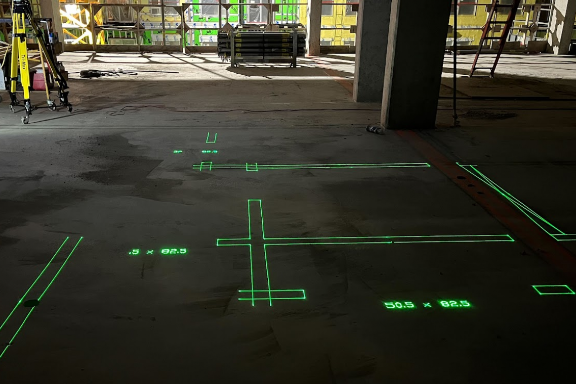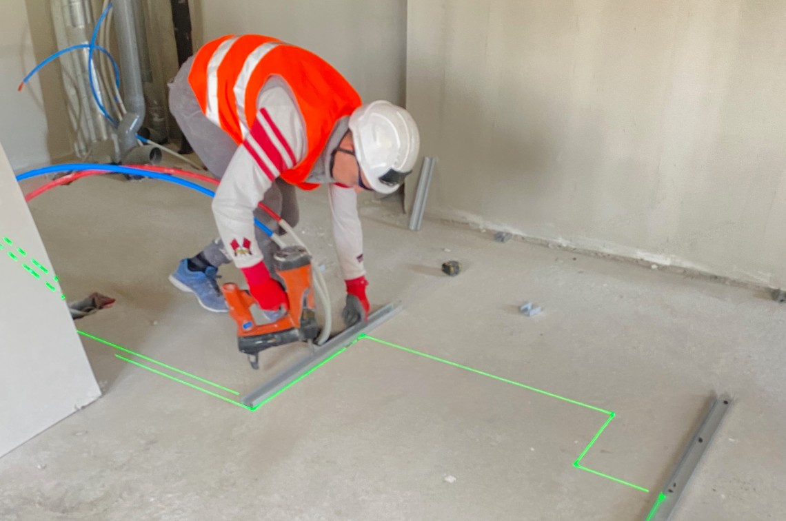 Der XR-Projektor ist eine echte Leistungsinnovation in der Welt des Bauwesens. Die präzise Projektion der Elemente Ihres Plans oder Ihres BIM sowohl auf dem Boden als auch an der Decke ermöglicht erhebliche Zeit- und Qualitätseinsparungen.